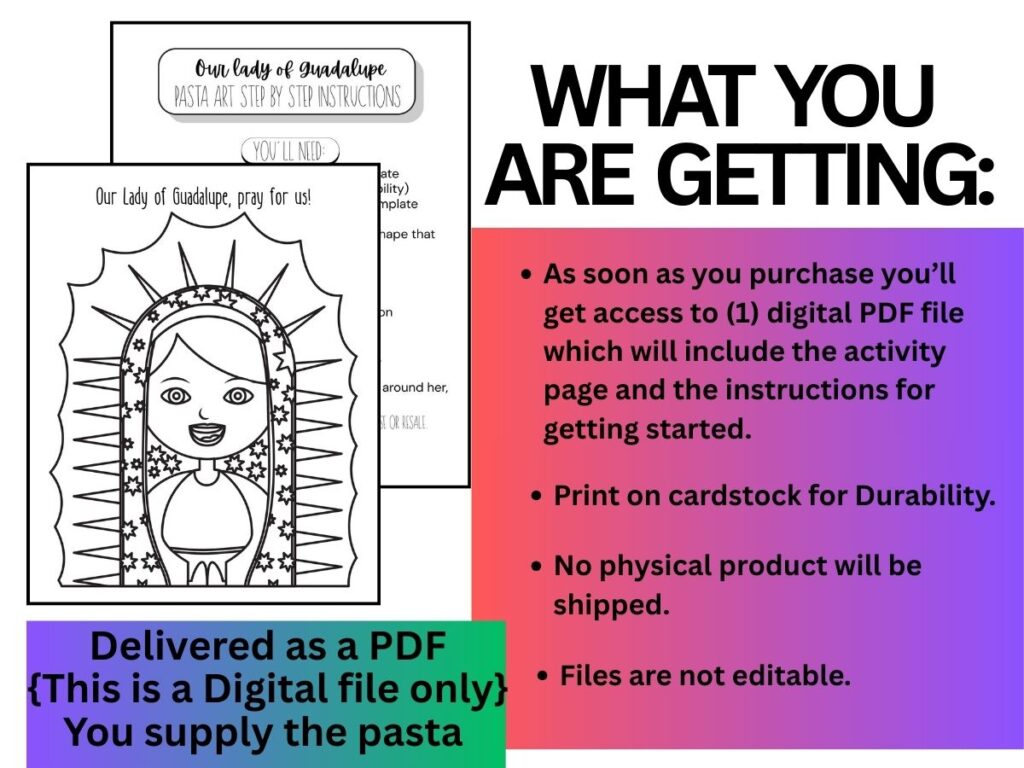 If your kids create this Our Lady of Guadalupe pasta craft, I would absolutely love to see your art in action! Head over to my etsy and share your photos and leave me a review.